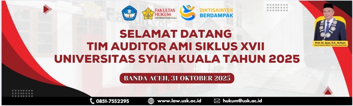06 Des 2025 admin Berita Kampus, Tak Berkategori FAKULTAS HUKUM UNIVERSITAS SYIAH KUALA ADAKAN FGD PENYUSUNAN VISI, MISI, TUJUAN & SASARAN (VMTS) PROGRAM STUDI SARJANA ILMU HUKUM Fakultas Hukum Universitas Syiah Kuala selenggarakan Focus Group Discussion (FGD) pada hari Jum’at 29 November 2024 di Ruang Aula Lt.2 Fakultas Read More