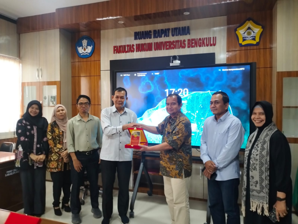 Setelah sesi diskusi, Ketua Departemen FH USK menyerahkan plakat kepada FH UNIB sebagai tanda terima kasih dan penghormatan atas kesediaan berbagi pengalaman dalam implementasi akreditasi internasional, serta menandai hubungan akademik yang erat antara kedua fakultas hukum.